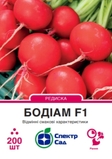 НАСІННЯ РЕДИСКИ БОДІАМ F1, УПАКОВКА 200 ШТНадранній гібрид, що формує коренеплід за 20-23 дні при оптимальних умовах вирощування.Призначений для вирощування у відкритому та закритому грунті в умовах недостатього освітлення. Висів у зимово-весняні та літньо-осінні строки.Пластичний гібрид та добре адаптований до стрессових умов вирощування.Формує яскраво-червоний коренеплід діаметром 3-4 см. Висока однорідність та ринкова товарність коренеплодів з стійкістю до розстріскування. Вегетаційний період 20-23 дні.