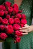 Квітка яскраво червоного забарвлення з махровими пелюстками .